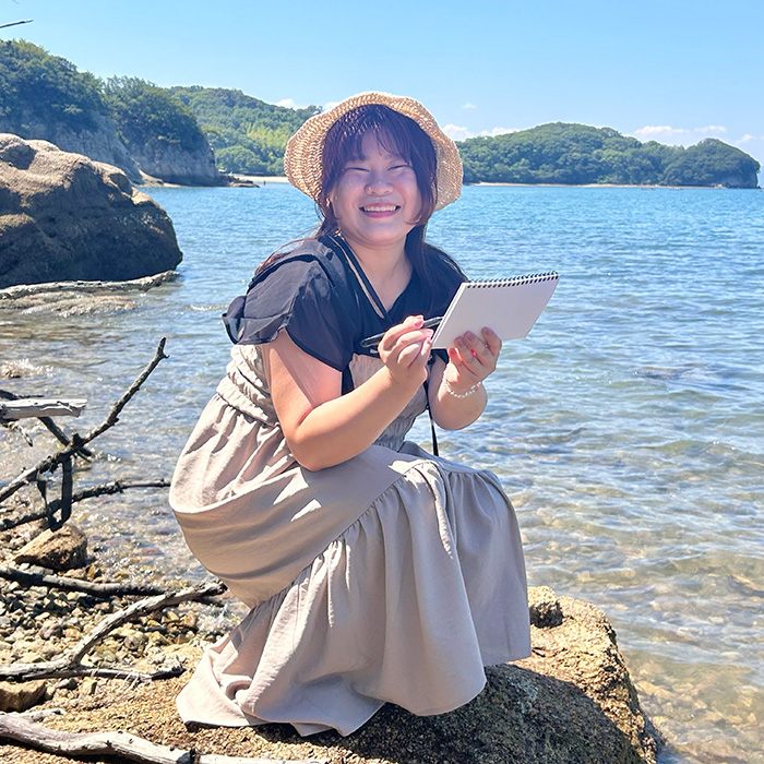 Born in Osaka, Japan. Moved to NaoshimaOgijima to study contemporary art when she was in college studying art. She joined Shimarebi because she loves the islands so much and wanted to work in the Seto Inland Sea, where she creates a wide range of designs from Shimarebi logo and image colors to illustrations expressing the best parts of the islands.