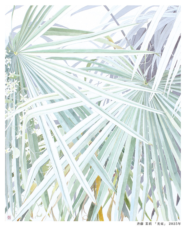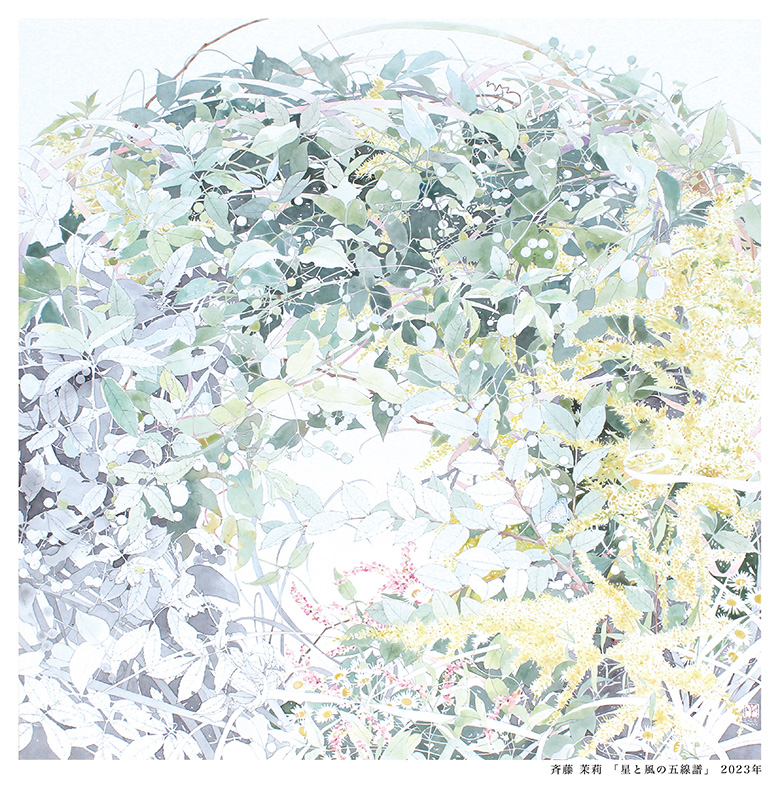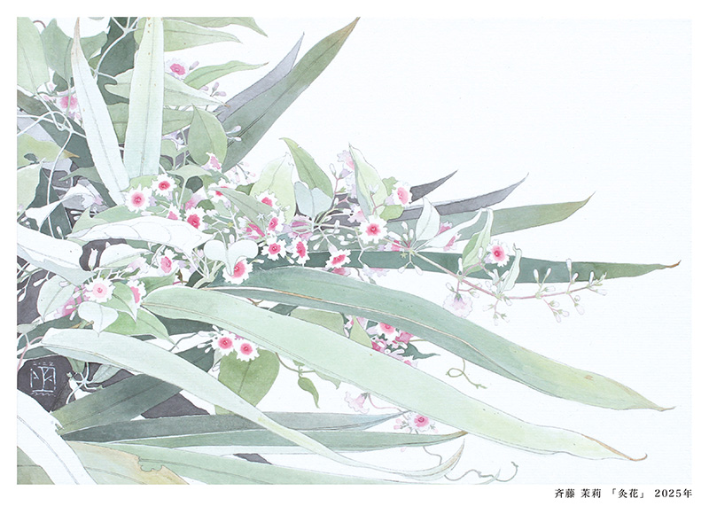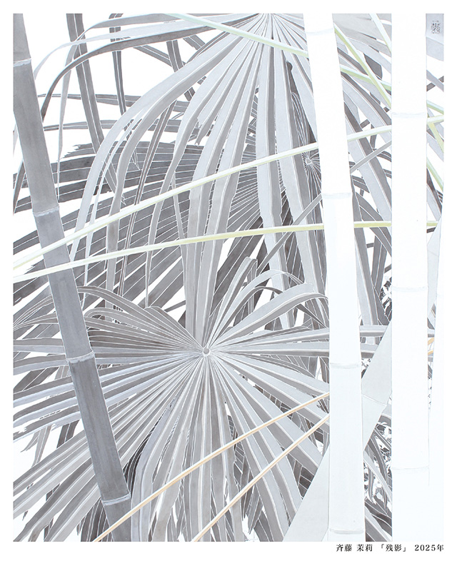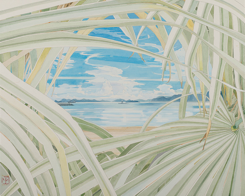 Painter from Tokyo. While enrolled in the Japanese painting course at Musashino Art University's graduate school, he participated in the "HOT Sandal Project," a residency program for art students from all over Japan at Sanuki Hiroshima, Teshima, Little Teshima, and Honjima Marugame, which led to his fascination with the islands, and in 2016 he moved to Sanuki Hiroshima In 2016, he moved to Sanuki Hiroshima. He draws on the theme of "time" using plants that live on the island as his subject matter, and his designs have been featured on the Marugame Uchiwa, a traditional Japanese craft, and on the packaging of local island products.